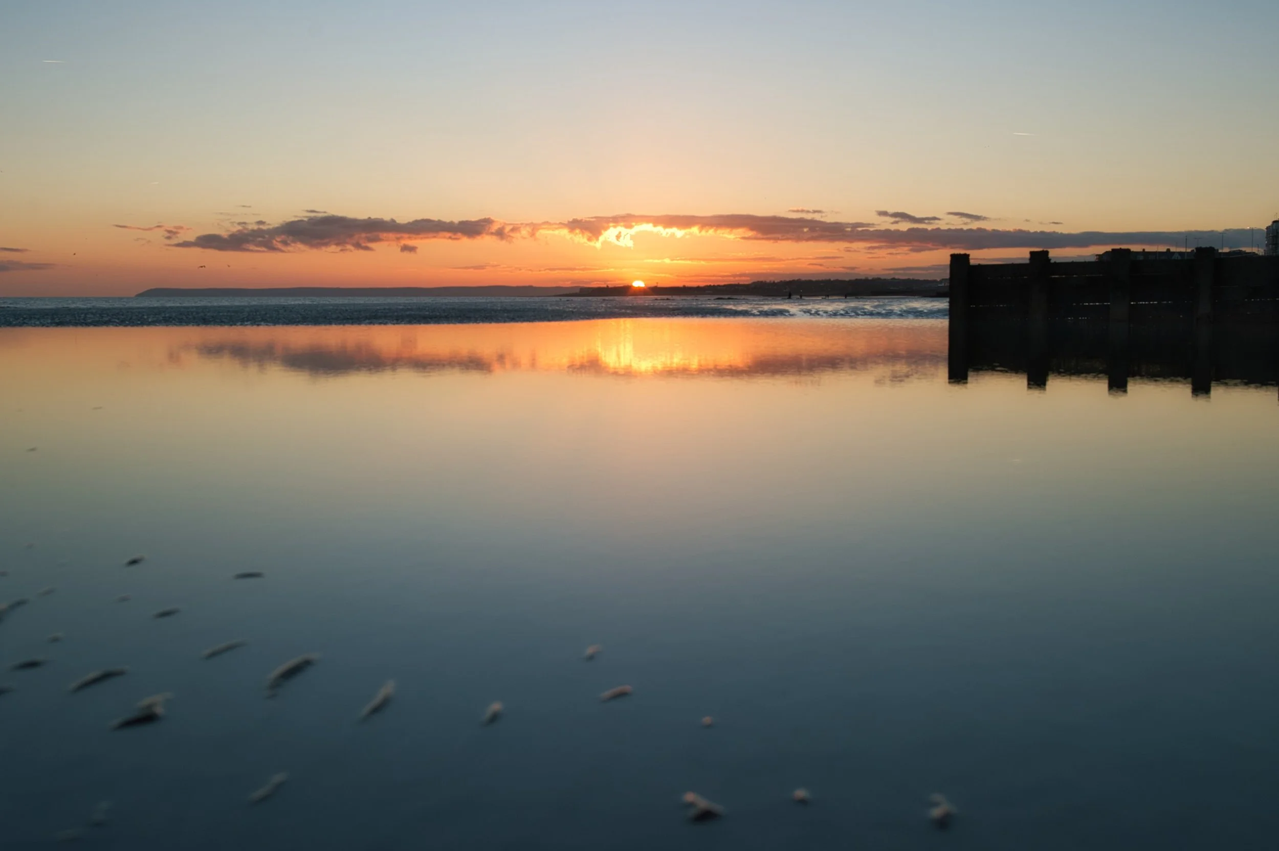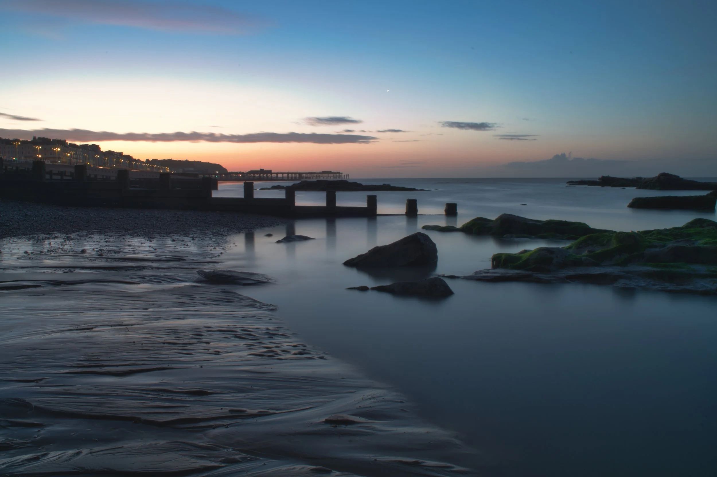 This part of the beach at St Leonards is very sheltered from the waves and gives a very still feeling to this predawn seascape.
