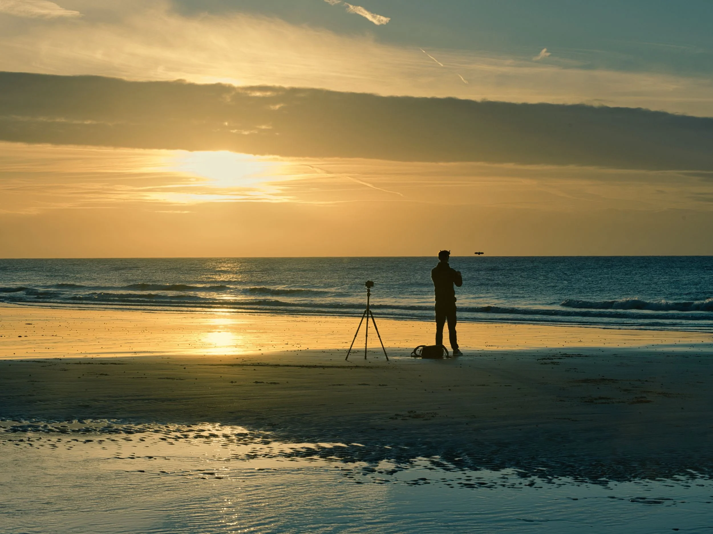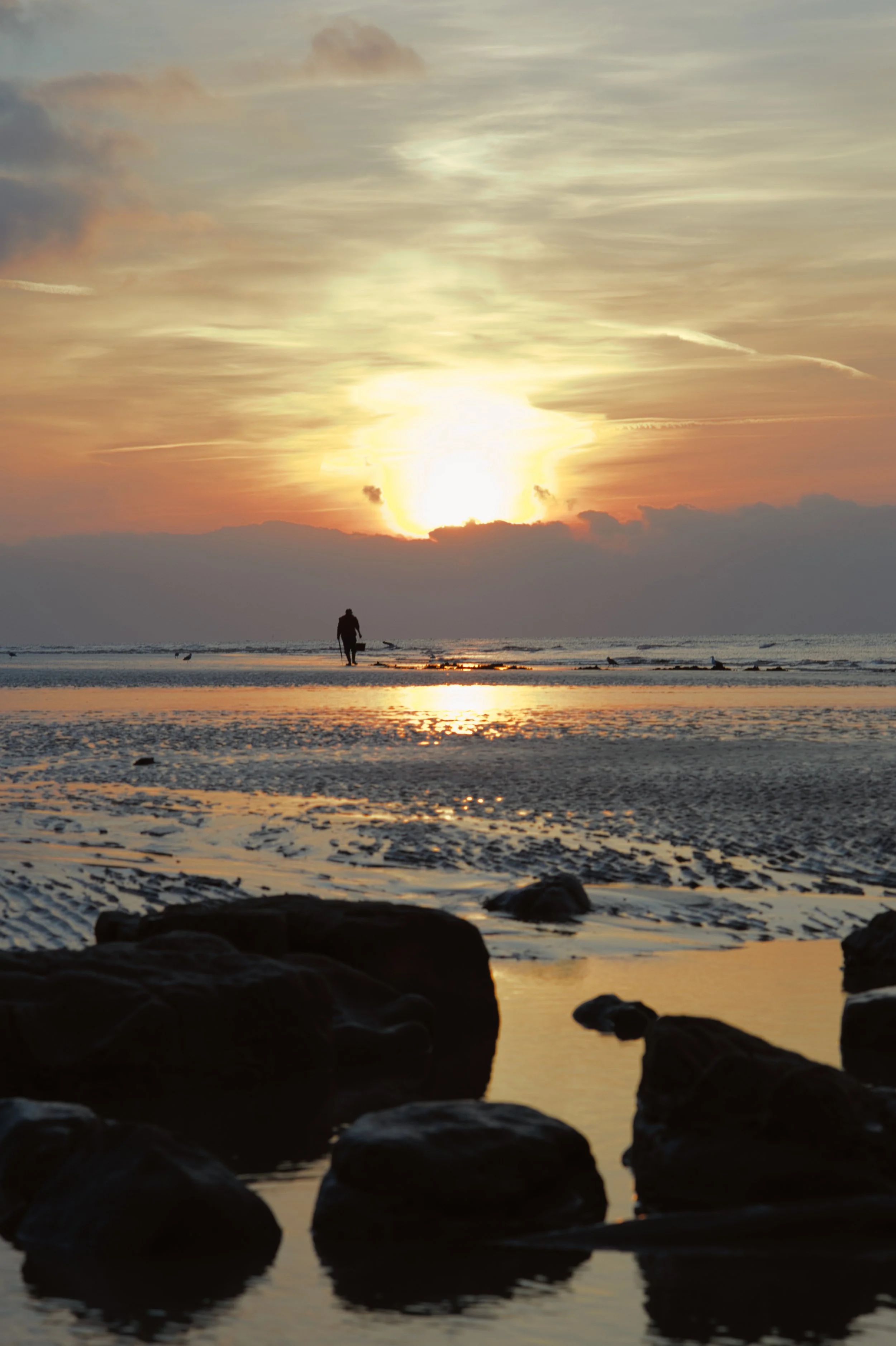 Most of these photos are taken early in the morning when the tide is out and the sand becomes an abstract mirror to the sky. At this time the beach is mostly empty apart from the occasional dog walker or eager swimmer.