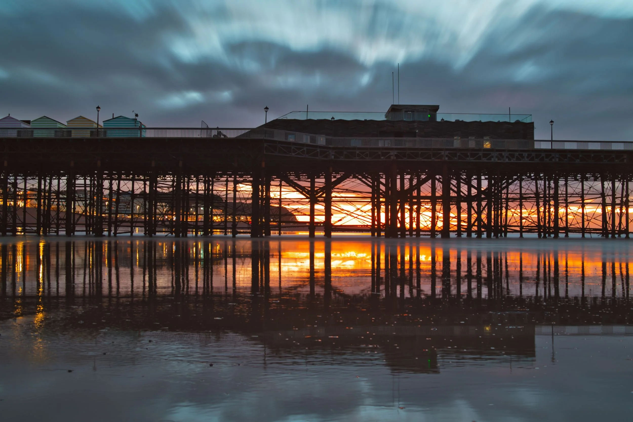 Almost all of the structure of the pier is visible at dawn with a very low spring tide.