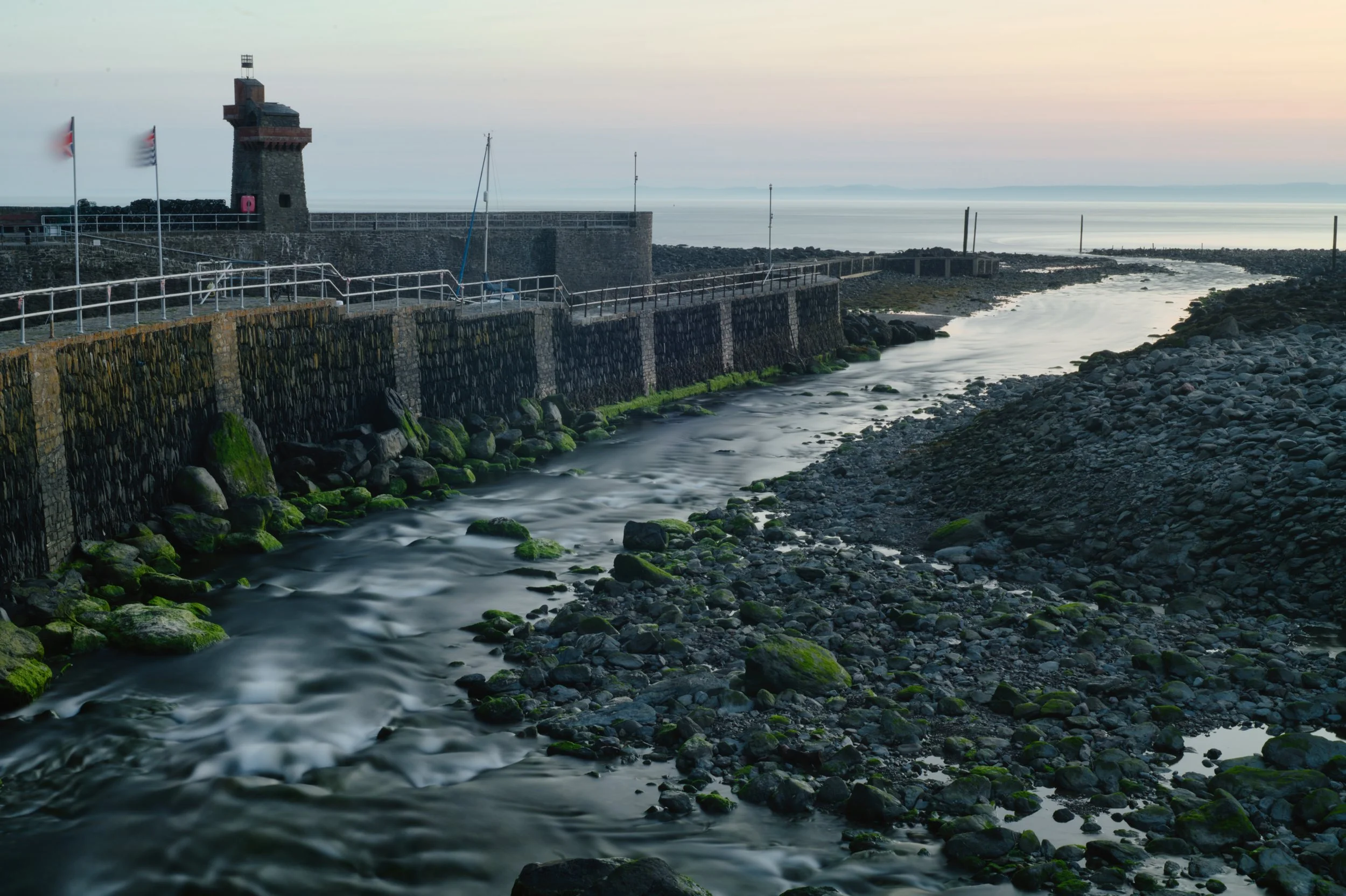 The river Lyn flows out into the Bristol Channel just before dawn.