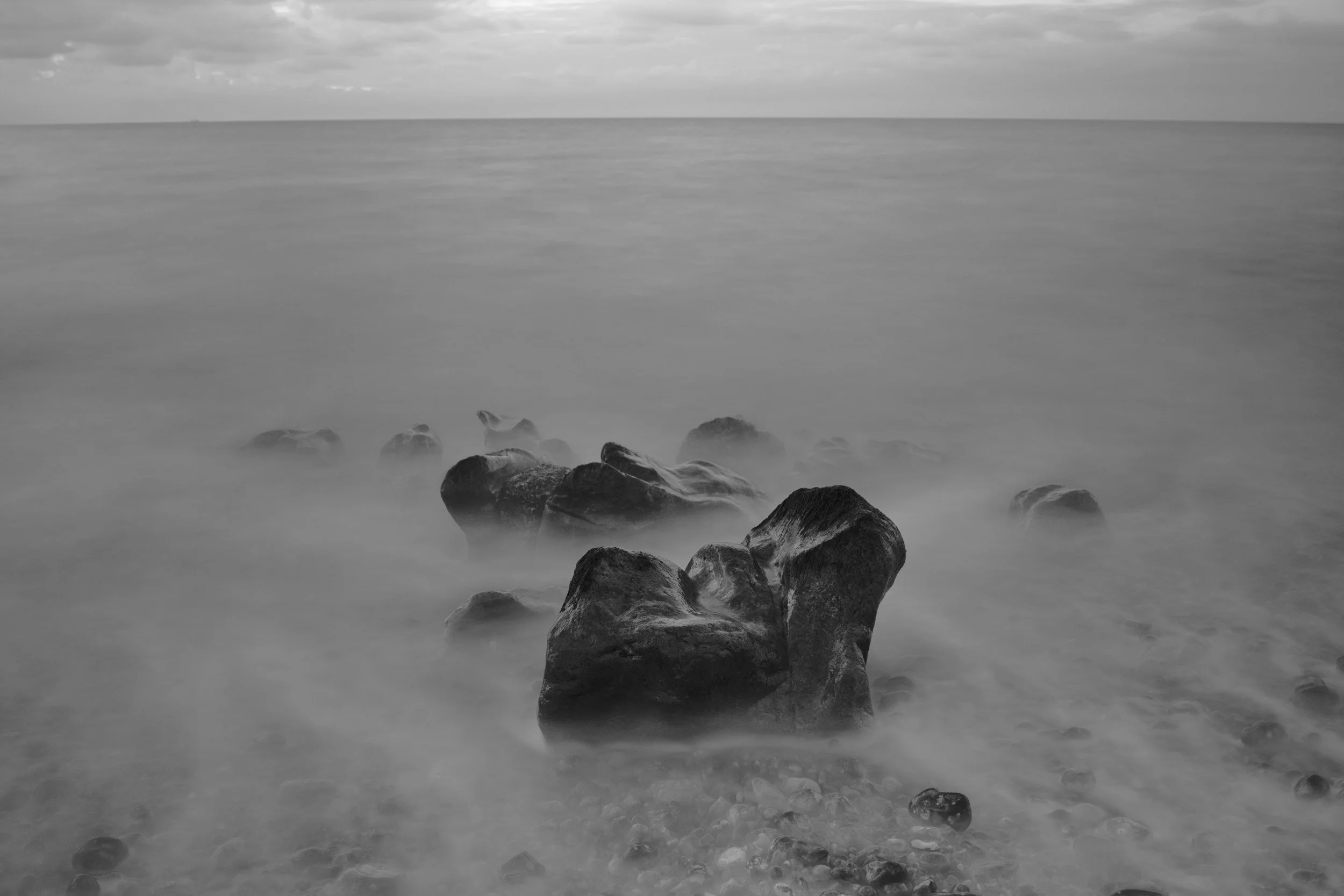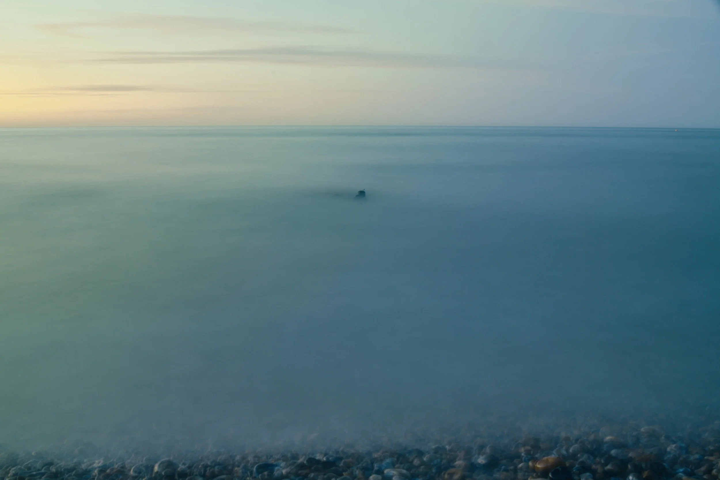 A slightly misty morning in St Leonards gives a subtle colouring to the waves as they blend into a mist with the long exposure.